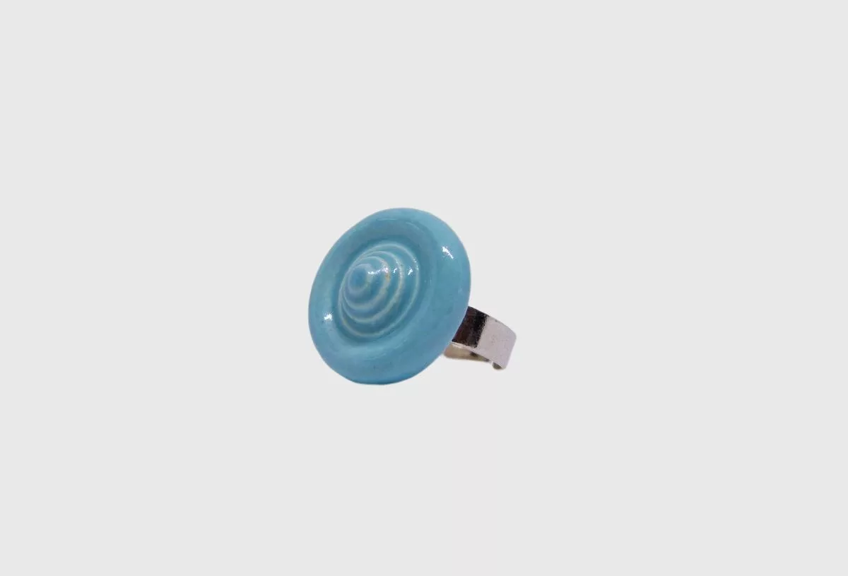De la céramique vernissée pour cette bague au bleu tendre. Cet exemplaire unique habillera avec originalité tous les doigts.