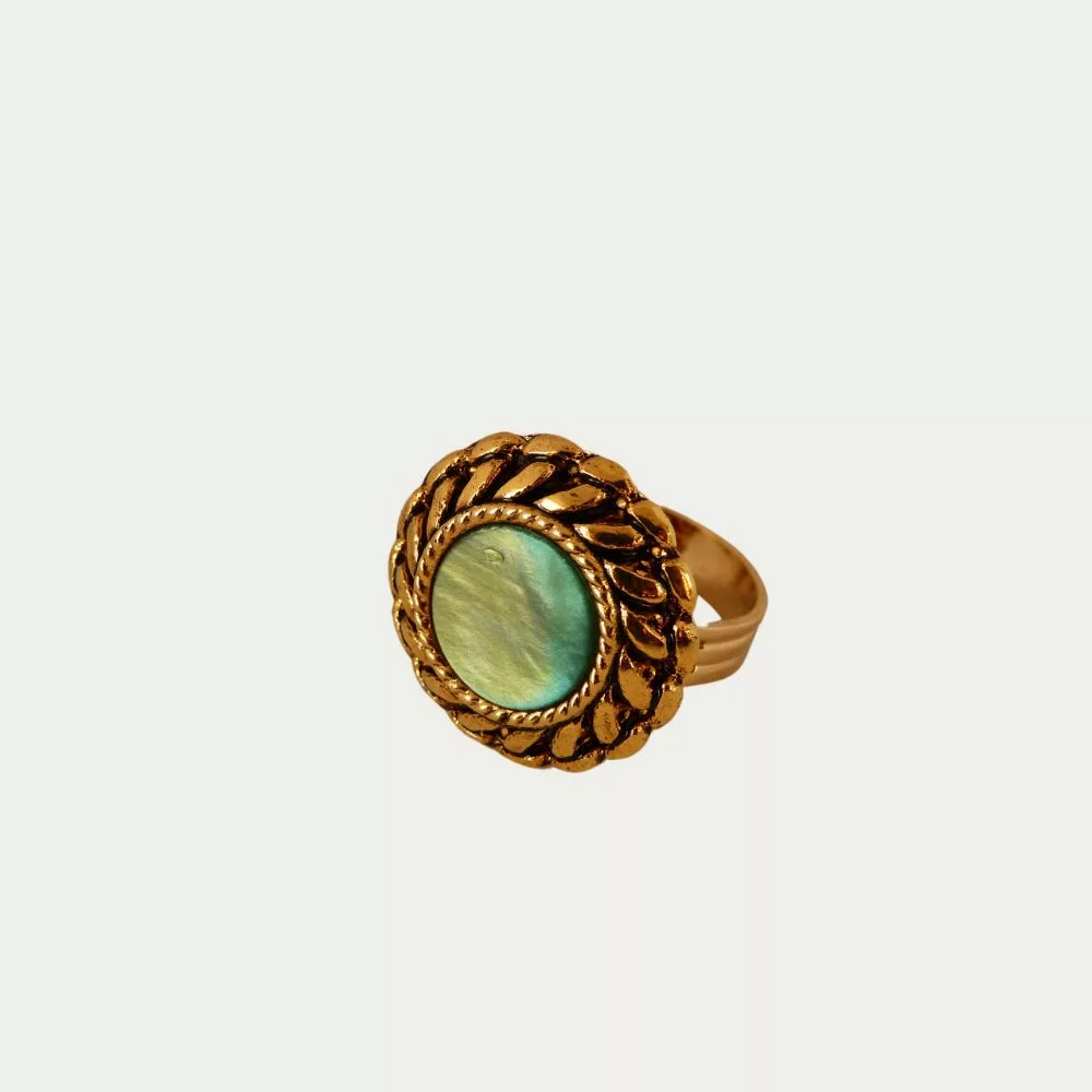 Découvrez cette très jolie bague aux nuances vert d’eau.