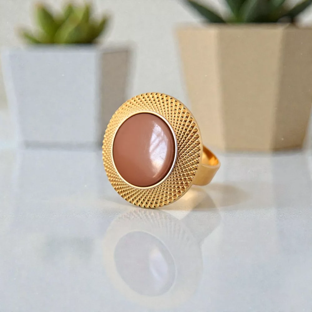 Cette bague Soleil d’Automne accompagnera avec raffinement toutes vos tenues.