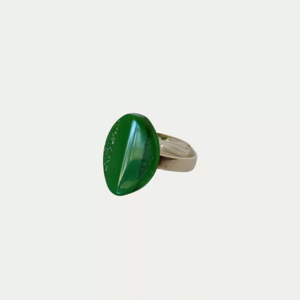 Ajoutez une touche colorée à votre look avec cette ravissante bague Menthe Verte. Vous aimerez sa forme originale et son cabochon pailleté. N’hésitez plus: son anneau en plaqué argent s’adapte à tous les doigts.