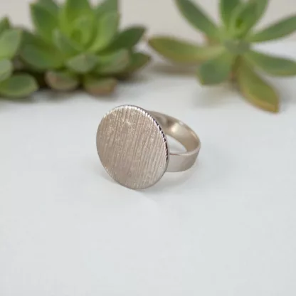 - Anneau en laiton plaqué argent 925 . Epaisseur de l’argent 14 microns, très nettement supérieure à celle de l’argent « flash » couramment utilisé.