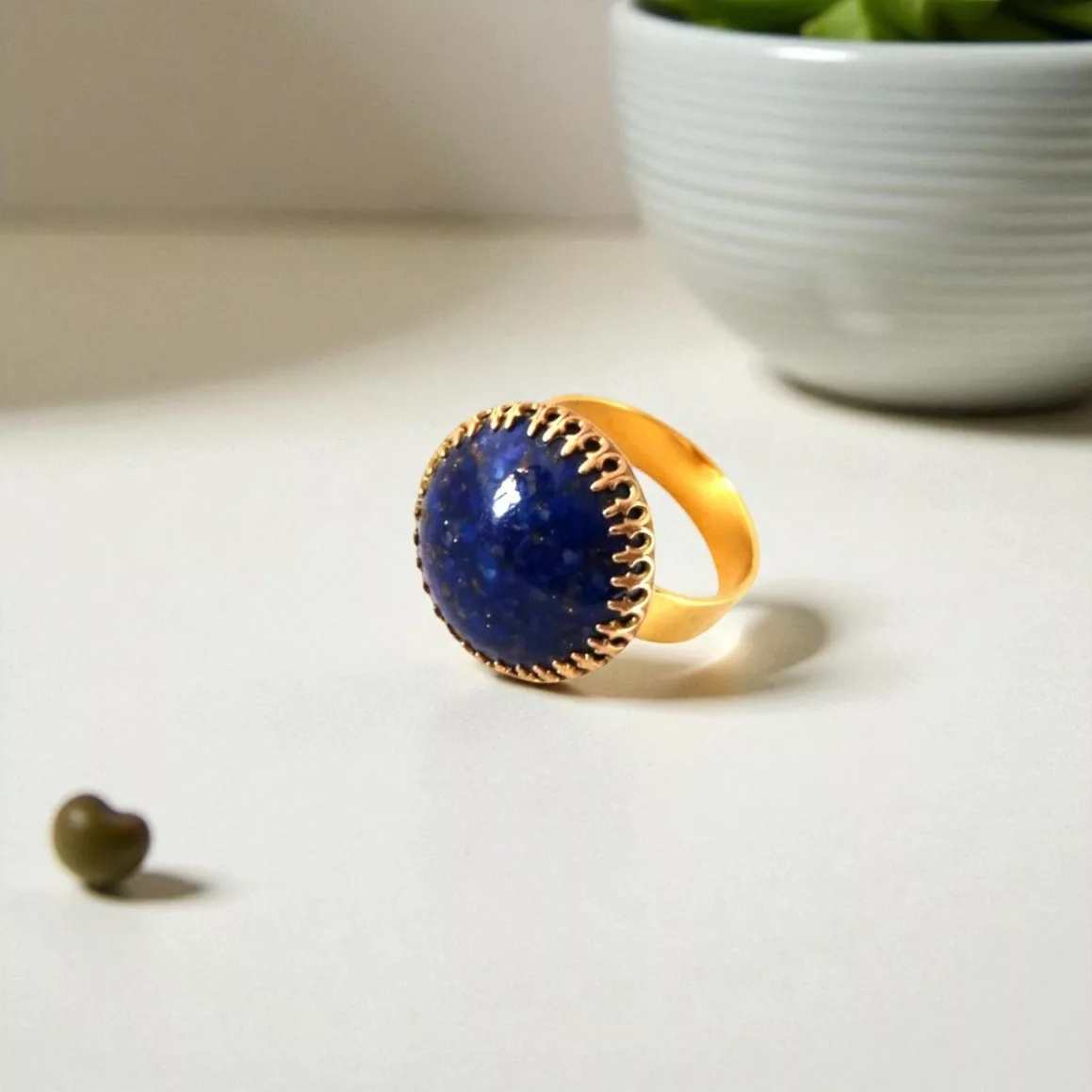 Anneau ajustable sous le plateau doré à l’or fin 24 K.