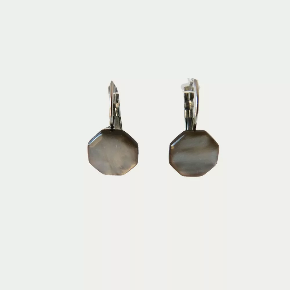 Ces boucles d’oreilles Octogonales, d’un beau gris nacré, ajouteront une touche élégante et raffinée à vos tenues, en toutes circonstances. Boucles d’oreilles issues du recyclage d’anciens boutons.