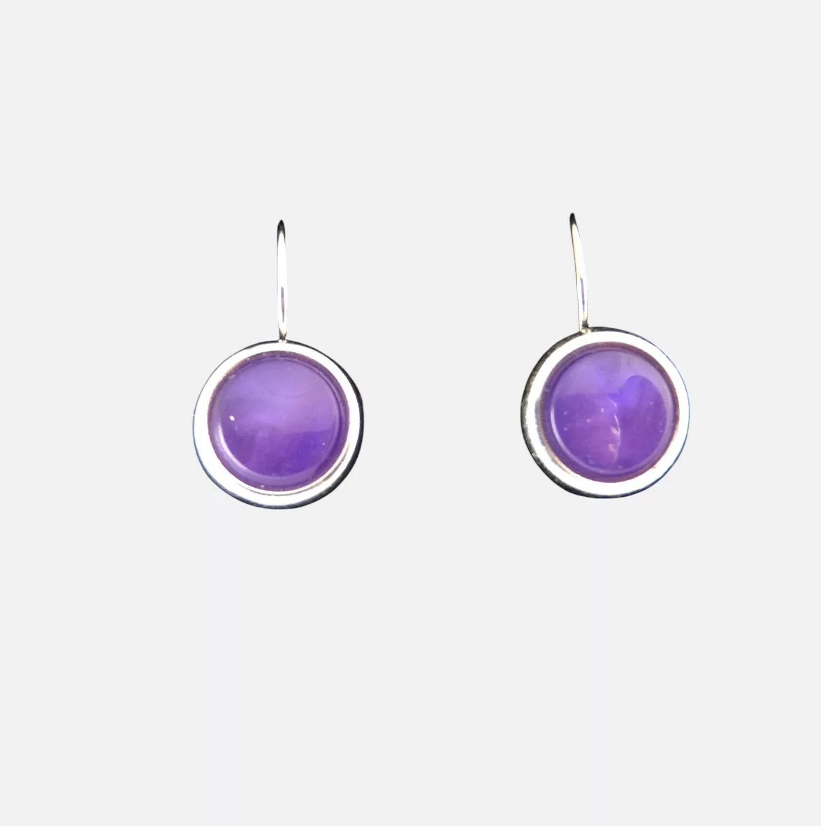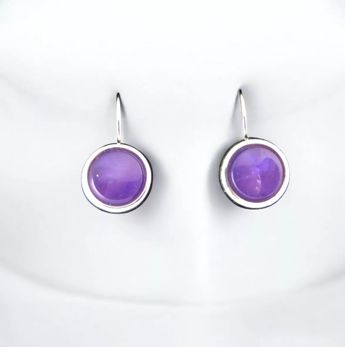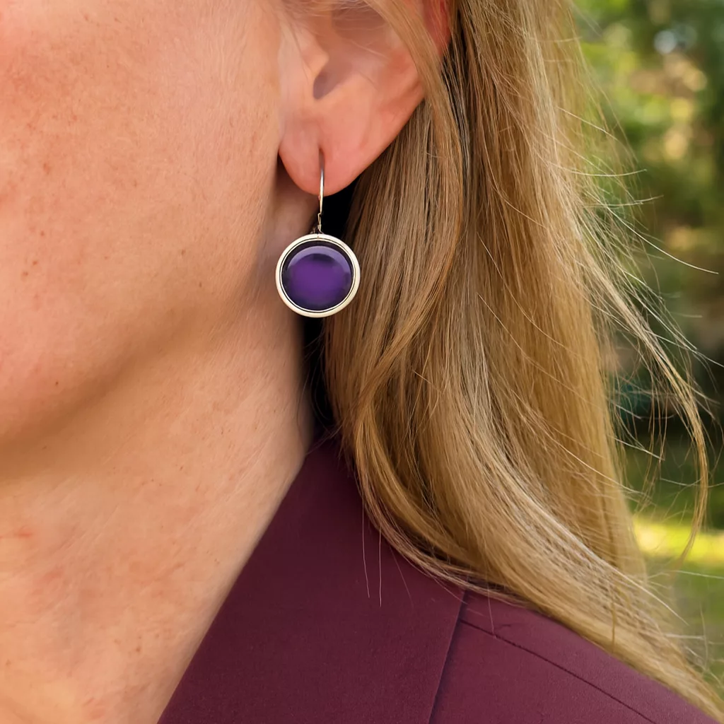 Ces boucles d’oreilles Violettes mettent à l’honneur une teinte envoûtante : le violet. Façonnée à partir de boutons vintage soigneusement sélectionnés pour leur couleur profonde et leur surface lisse et brillante. Le cabochon central, aux reflets améthyste, capte la lumière avec subtilité et évoque à la fois mystère, élégance et féminité.