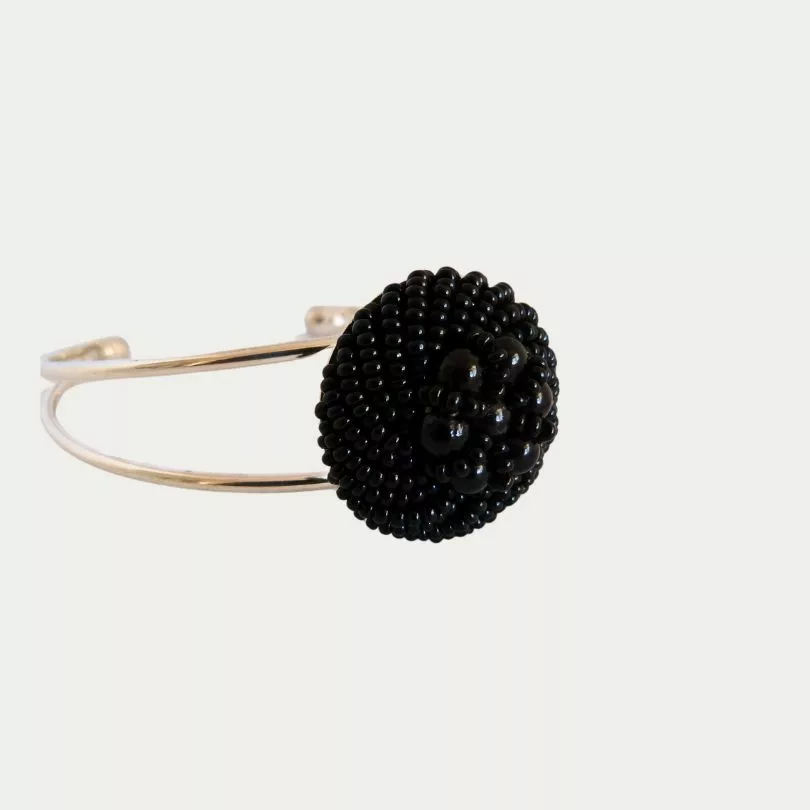 Un charme retro chic pour ce bracelet dont le cabochon est composé de fines perles noires savamment disposées. Il sera l’accessoire indispensable pour compléter vos tenues. Exemplaire unique issu d’un bouton ancien.