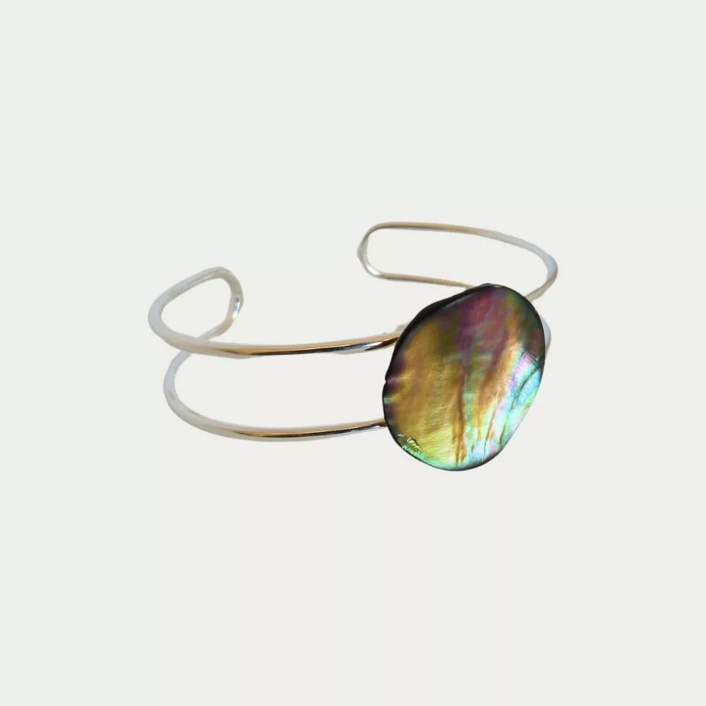 Ce bracelet Nacre Irisée se pare d’un magnifique disque de nacre. La matière naturelle s’anime de fabuleux reflets. Accessoire à l’élégance intemporelle, vous le porterez facilement au quotidien. Bracelet en laiton placage argent fin, adaptable à tous les poignets.